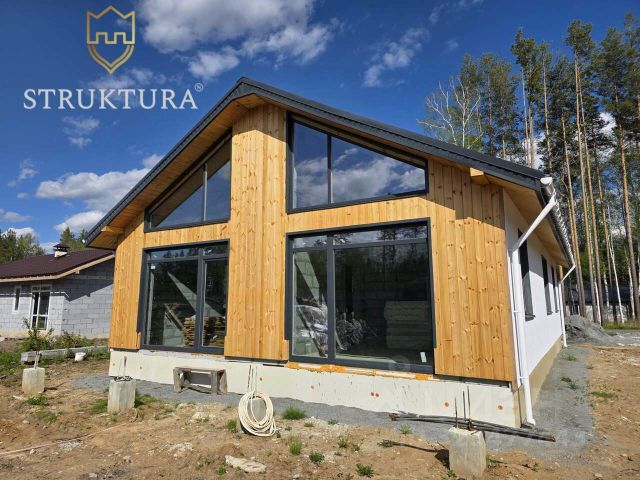 К продаже представлен новый дом, отвечающий самым актуальным тенденциям загородного строительства: стильный и изысканный, простой и в тоже время выразительный, словно намекая всем своим видом на тихую роскошь и безмятежное спокойствие загородной жизни.