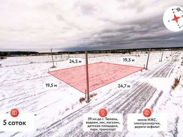 Покупай сейчас - плати потом! На данный объект доступна рассрочка на выгодных условиях СРОЧНАЯ ПРОДАЖА!! Перспективный участок по минимальной стоимости Продается квадратный участок 5 соток для индивидуального жилищного строительства в престижном КП "Сердце". Это не просто земля — это ваш шанс создать идеальный дом для вашей семьи в одном из самых привлекательных мест Тюмени. Электричество по всей территории коттеджного поселка уже есть. Поселок "Сердце" расположен вдоль популярного Московского тракта, что обеспечивает легкий доступ к городу и всем его удобствам. Здесь вы найдете все необходимое для комфортной жизни: электричество, газ, дороги с твердым покрытием, а также обустроенные детские площадки и прогулочные парки, где ваши дети смогут играть и развиваться на свежем воздухе. Коттеджный поселок предлагает развитую инфраструктуру: рядом находятся школы, больницы и магазины, что позволяет вам не тратить время на дальние поездки за покупками или услугами. Также предусмотрена гостевая парковка и автобусная остановка, что делает жизнь еще более комфортной и удобной. "Сердце" — это не просто место для жизни, это сообщество единомышленников, где царит атмосфера уюта и спокойствия. Окружите себя красотой природы с цветущими вокруг васильками и наслаждайтесь каждым днем в своем новом доме! Не упустите возможность приобрести этот участок сейчас, в несезон, по привлекательной стоимости! Интересны подробности, звони прямо сейчас. МЫ ГАРАНТИРУЕМ ФИНАНСОВУЮ БЕЗОПАСНОСТЬ ДЛЯ НАШИХ КЛИЕНТОВ. Код пользователя: 154209 Номер в базе: 3955534