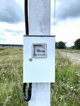 На участке установлен свой личный ж/б столб, щит в сборе на 380В 15 кВ.
