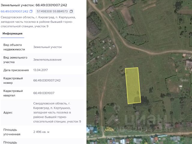• ✓ В базе Циан 2 земельных участков в поселке Карпушиха Свердловской области