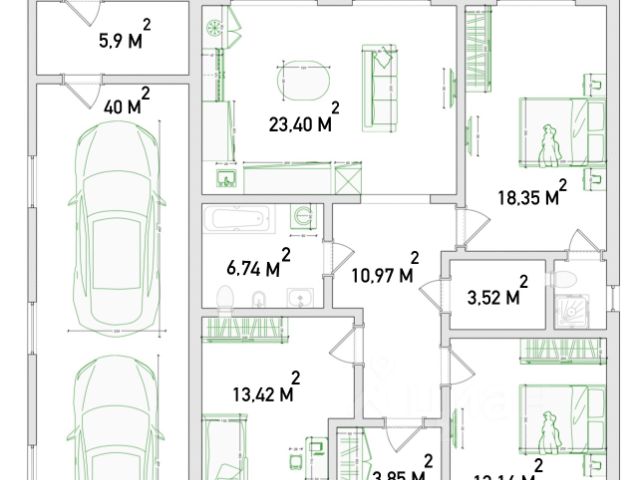 2 этаж: 4 спальные комнаты, кабинет, санузел, ванна джакузи с гидромассажем.