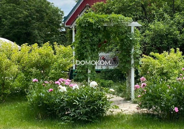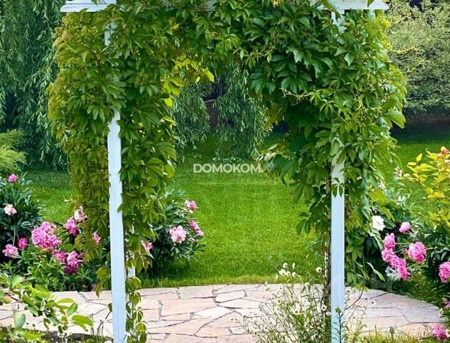 Участок ровный, полностью разработан и ухожен: ландшафт с цветниками, перголами, лужайками, альпийскими горками, уютными местами для отдыха, широкими дорожками из плитняка и цветной тротуарной плитки.