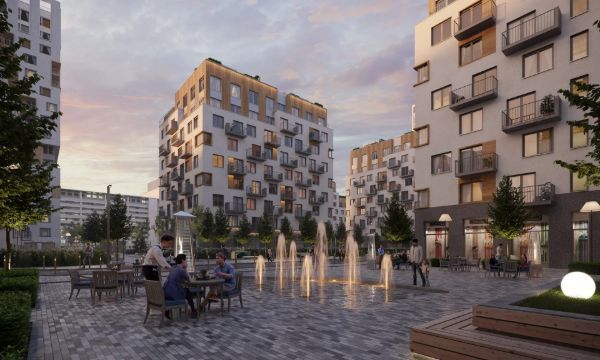Проект реализован по принципу mixed-use: жилые и коммерческие пространства соседствуют с местами для отдыха и спорта. Закрытые дворы и подземный паркинг освобождают территорию от машин и сохраняют зелёные зоны: пешеходные маршруты остаются непрерывными, а дворы — спокойными и безопасными.
