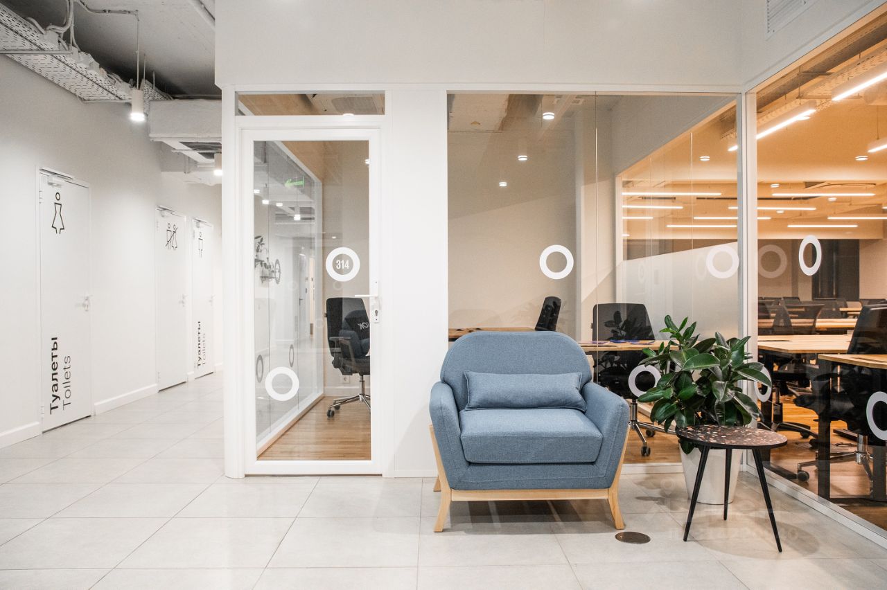 Аренда офиса позволяет использовать все сервисы SОК: общие зоны, коворкинг, телефонные будки, кухню, а также посещать мероприятия для резидентов на любой локации.
