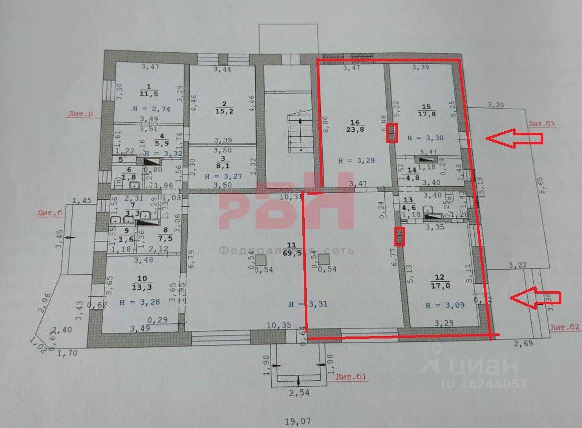 - Помещение находится на 1 этаже жилого 2-этажного дома;