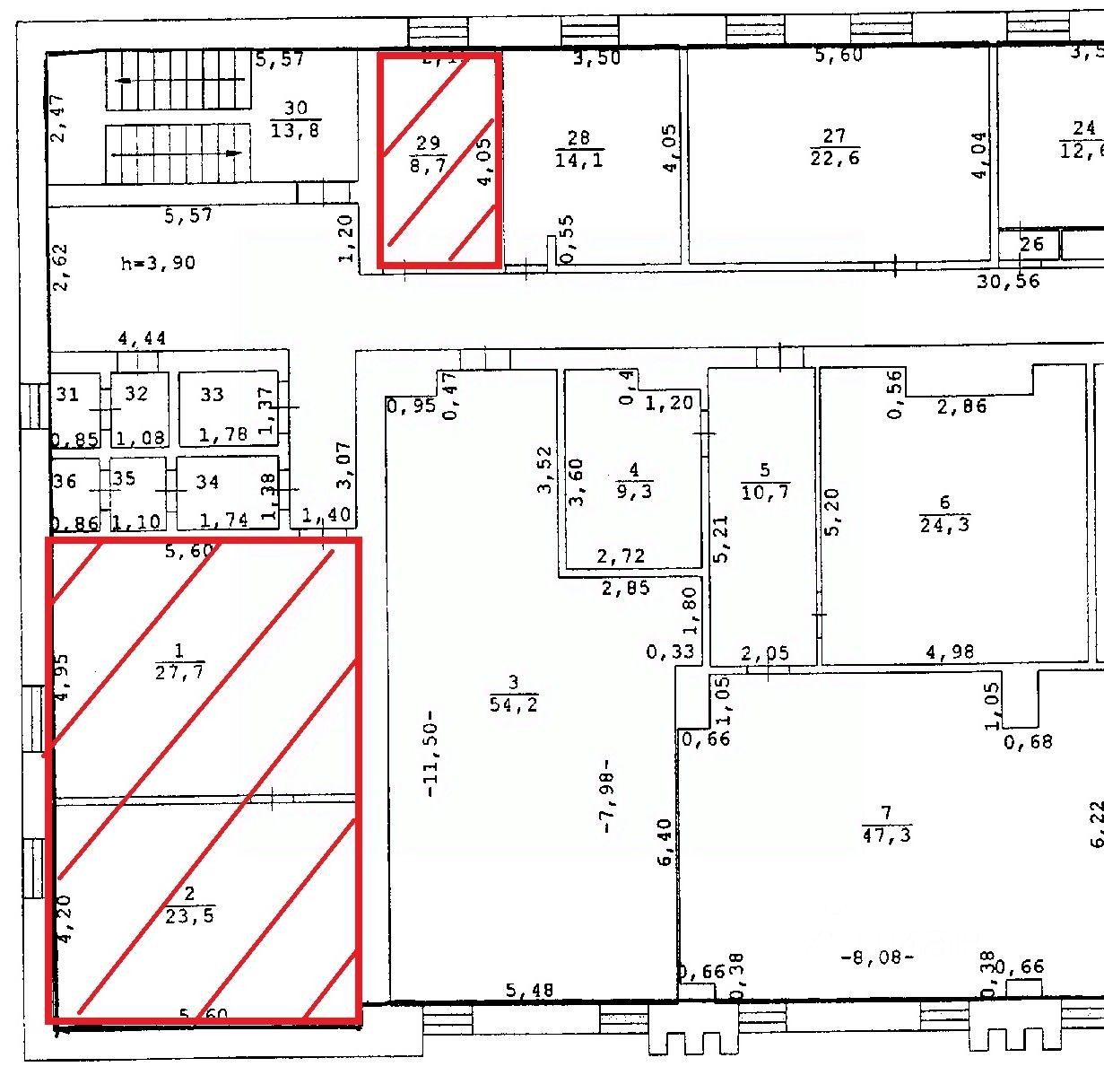 Вход со двора. Помещения обеспечены электроснабжением, водоснабжением и отоплением. С/у на этаже. Помещение подойдет для офисного сегмента, склада.