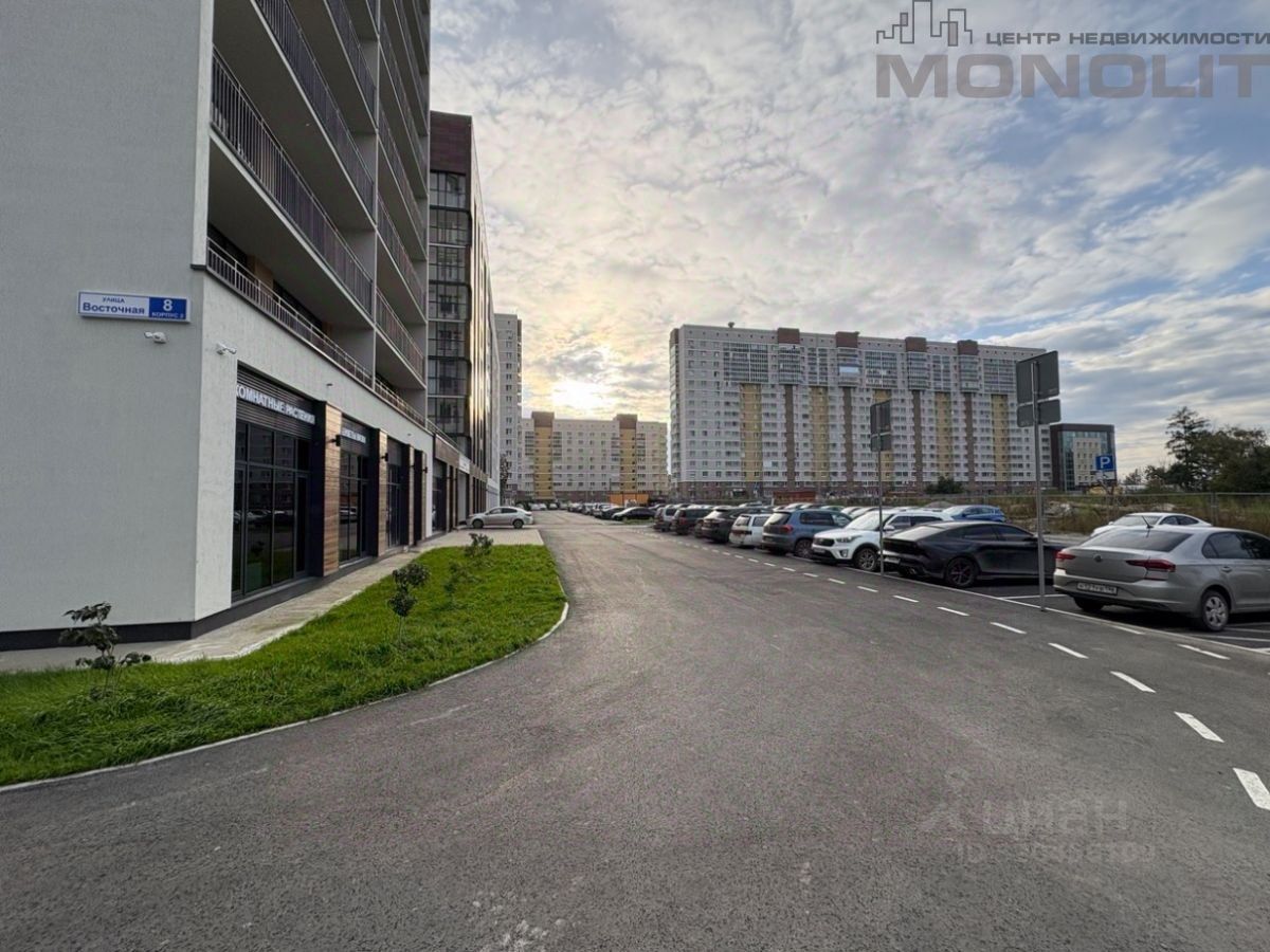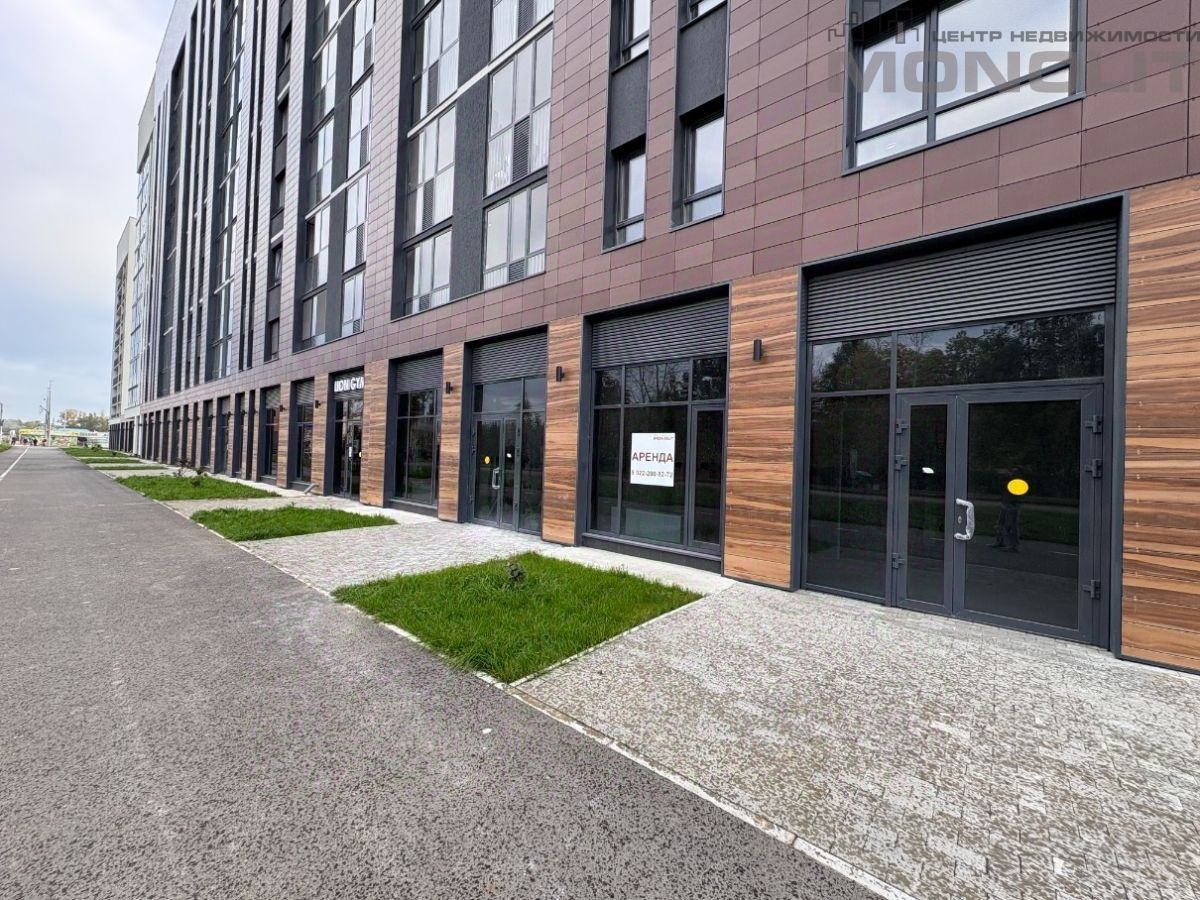 Отдельный вход с ул. Строителей (Парк Победы), высокий автомобильный трафик, отличная видимость вывески с дороги.
