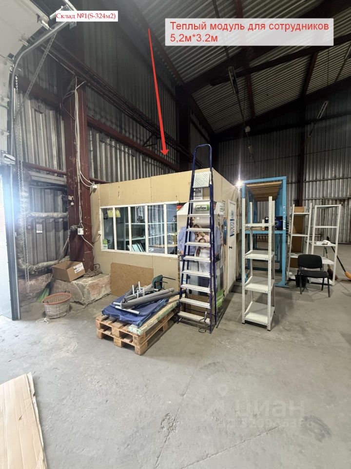 1-Среднетемпературный (зимой температура 7%-10%) склад площадь склада 324 м.кв, высота до систем освещения 6 м(до крыши 9м) , Внутри склада построено бытовое помещение для сотрудников 5,2*3,2 м(16,64м2) склад оборудован рампой для автомобилей Газель и разгрузочной площадкой перед складом