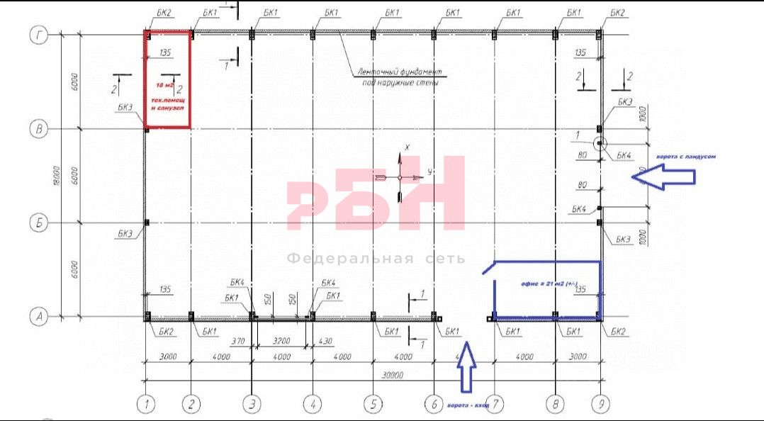 - двое ворот (одни на отметке 0 (3*4), вторые пандус)