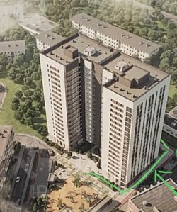 Первая секция.Сдача дома ноября 2025 года.Дом расположен внутри двора.