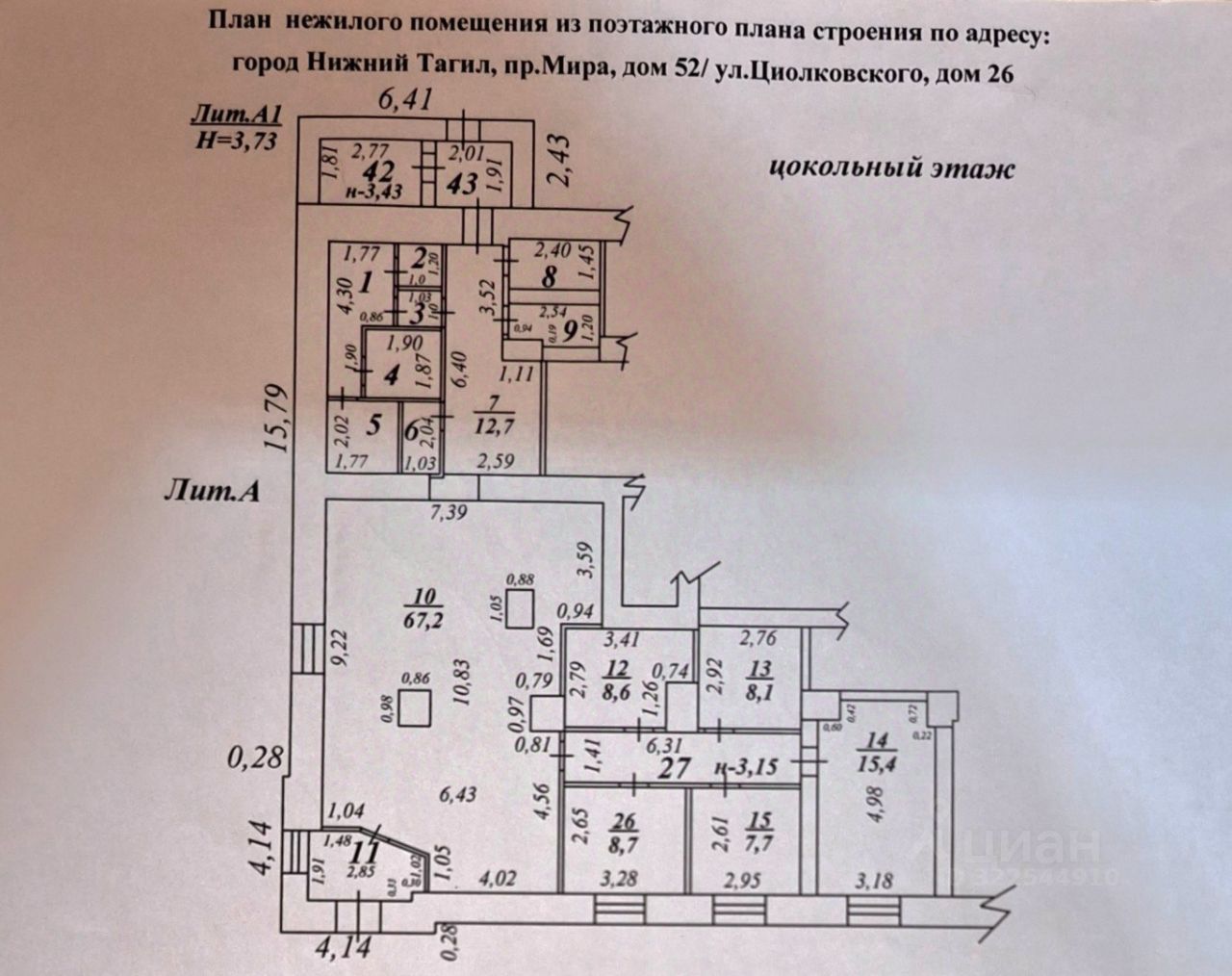Арт. 56666095 Сдается в аренду нежилое помещение свободного назначения площадью 166 кв. метров на первом этаже жилого дома по адресу: проспект Мира, 52/ улица Циолковского, 26.