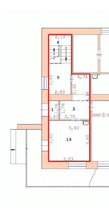 Первый этаж; с отдельным входом. На объекте имеется изменение конфигурации помещения, переустройство.