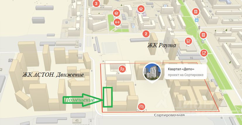 В окружении - два жилых комплекса сопоставимого уровня ЖК Астон Движение и ЖК Раута (более 3000 квартир)