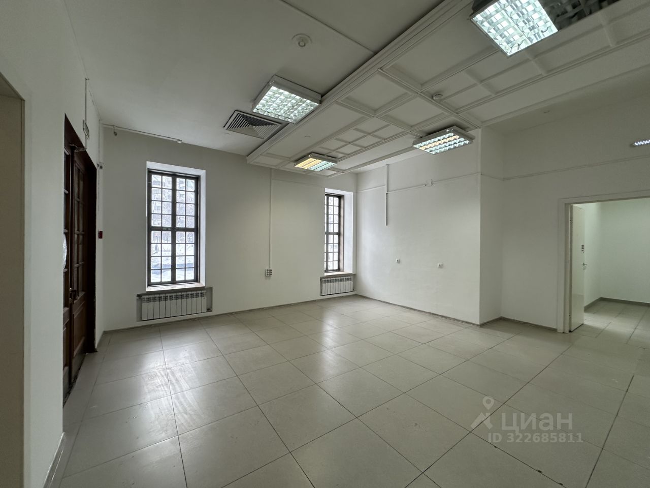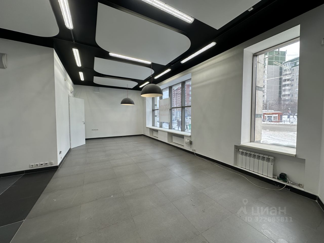 Огромные окна обеспечивают максимум естественного света и открывают отличный вид на город. Это идеальная площадка для эффектного шоурума, клиентского офиса или студии.