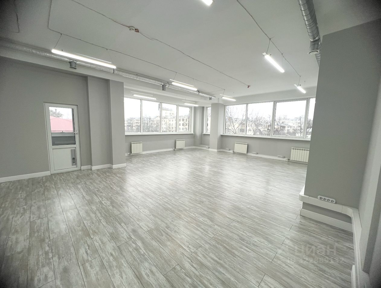 Отделка: пол - ламинат, стены -ГВЛ, окна-стеклопакеты, светодиодные-светильники , приточно-вытяжная вентиляция разведена во все кабинеты, пожарная сигнализация .