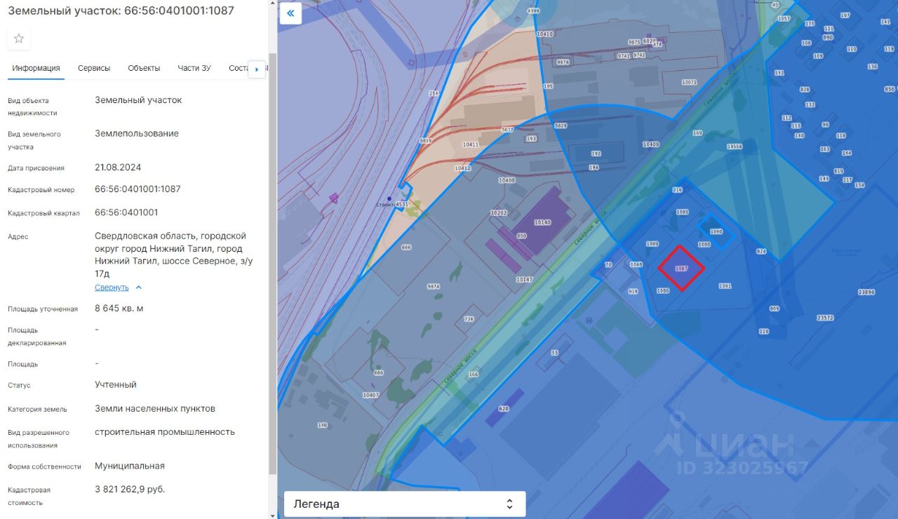 Лот 3. Земельный участок для строительства. Категория земель земли населенных пунктов. Кадастровый номер 66:56:0401001:1087. Местоположение: Свердловская область, городской округ город Нижний Тагил, город Нижний Тагил, шоссе Северное, з/у 17д. Площадь земельного участка 8645 кв. метров. Разрешенное использование земельного участка строительная промышленность. Срок аренды земельного участка 5 лет 6 месяцев. Начальная цена (ежегодный размер арендной платы) 413 000 (четыреста тринадцать тысяч) рублей. "Шаг аукциона" 20 600 (двадцать тысяч шестьсот) рублей. Размер задатка 82 600 (восемьдесят две тысячи шестьсот) рублей