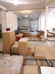 Высота потолков в производственных помещениях 4 метра. Гладкий сплошной пол. Много дневного света.