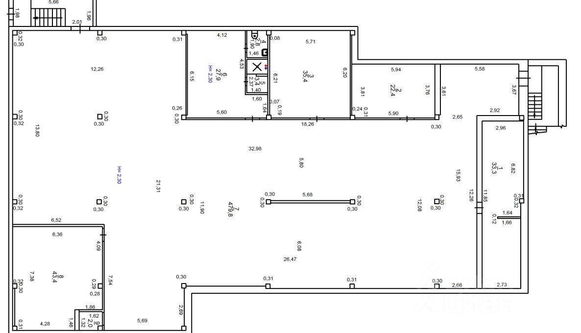 Сдается складское помещение под хранение оборудования и других материальных ценностей, общей площадью 647,5 кв.м., состоящее из большого открытого пространства с небольшими помещениями от 22,4 до 43,4 кв.м.
