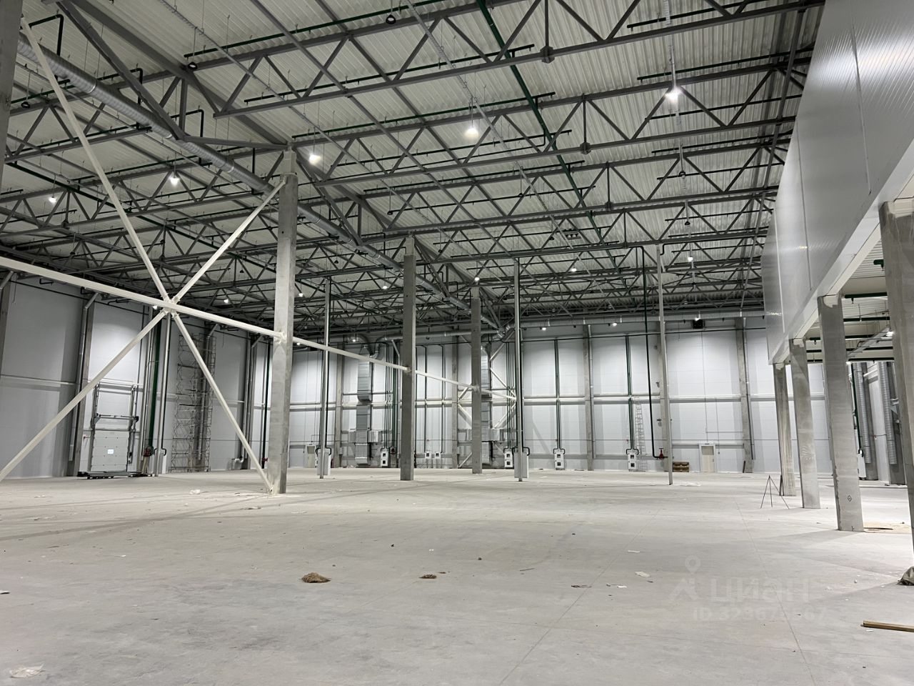 Склад площадью 3774 м2. Высота от пола (силовая монолитная ж/б плита с топингом) до нижнего края потолочной балки 11,2 м. На здании смонтирована наружная система видеонаблюдения.