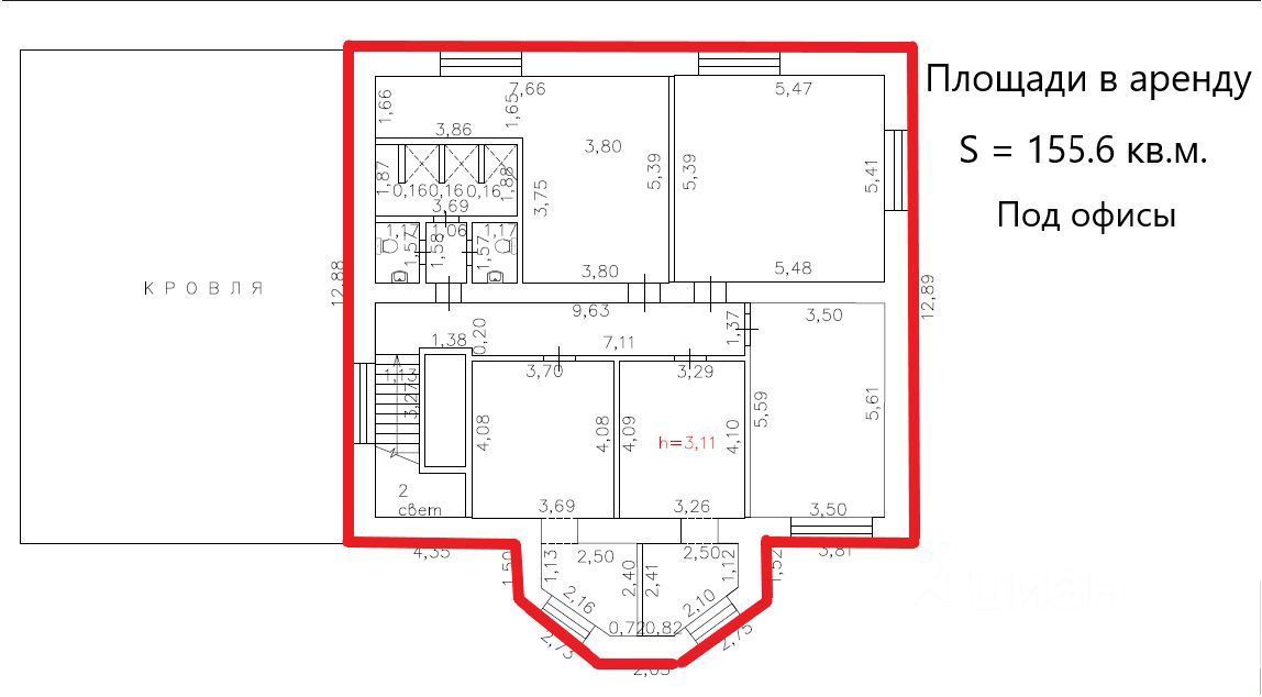 К помещению дополнительно сдается офис площадью 155 кв.м.