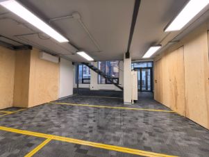 - первый этаж: свободная планировка 150 кв.м. (опен-спейс без внутренних перегородок), изолированный кабинет 12 кв.м.;