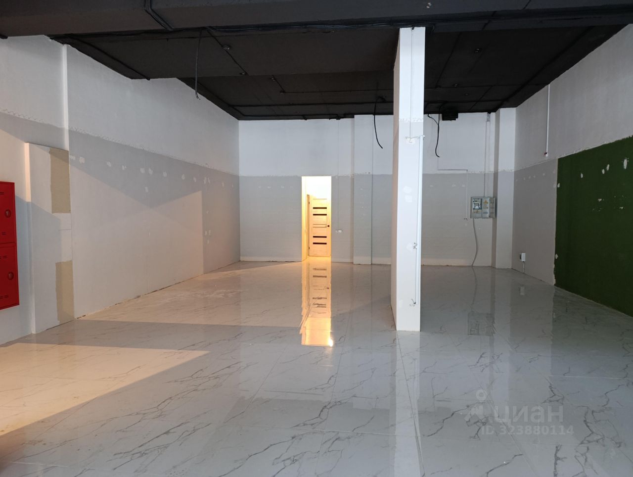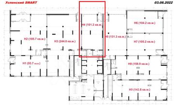 Помещение 100 квадратных метров в новом доме ЖК Успенский Смарт, панорамное остекление, универсальная отделка (стены, потолок окрашены, на полу керамогранит), есть служебное помещение и санузел.