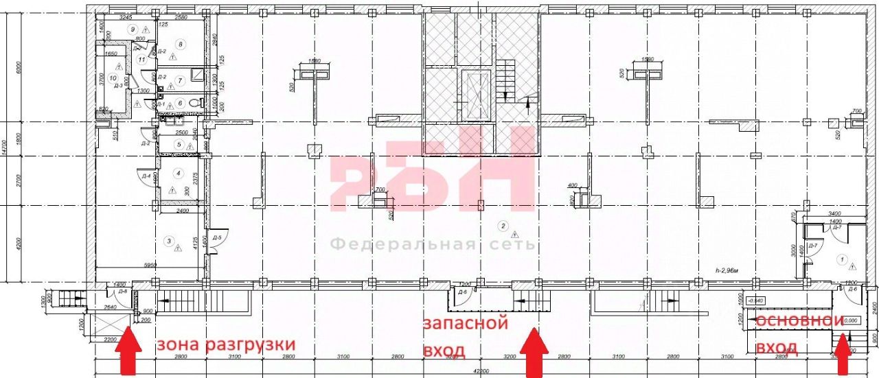 -В помещении выполнен центральный вход с теплой входной группой, запасной выход и вход с зоной приемки и складирования товара;