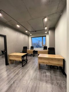 Сделан современный ремонт, ранее данное помещение не сдавалось. Мебель предоставляется как на фото (столы, стулья, диван), также холодильник, свч печь, кулер, маркерные доски, мощный кондиционер, все кроме кофе машины.