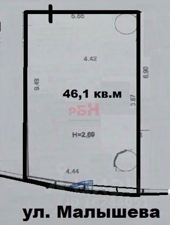 - Общая площадь 46, 1 кв. м;