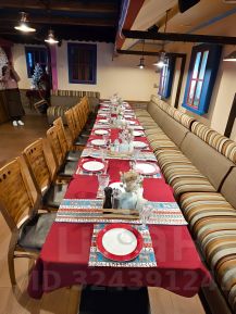 На кухне есть все оборудование. В зале - столы, стулья и др. мебель.