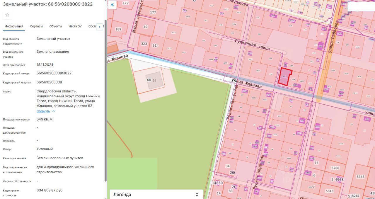 Лот 1. Земельный участок для индивидуального жилищного строительства. Категория земель земли населенных пунктов. Кадастровый номер 66:56:0208009:3822. Местоположение: Свердловская область, муниципальный округ город Нижний Тагил, город Нижний Тагил, улица Жданова, земельный участок 63. Площадь земельного участка 649 кв. метров. Разрешенное использование земельного участка для индивидуального жилищного строительства. Срок аренды земельного участка 20 лет. Начальная цена (ежегодный размер арендной платы) 67 000 (шестьдесят семь тысяч) рублей. "Шаг аукциона" 3 300 (три тысячи триста) рублей. Размер задатка 13 400 (тринадцать тысяч четыреста) рублей