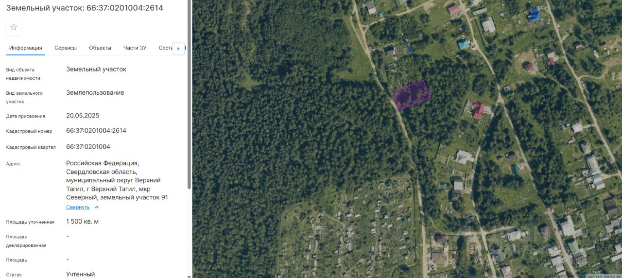 Земельный участок с кадастровым номером 66:37:0201004:2614, общей площадью 1500,00 кв.м., категория земель земли населенных пунктов, с разрешенным использованием для индивидуального жилищного строительства, расположенный по адресу: Российская Федерация, Свердловская область, муниципальный округ Верхний Тагил, г. Верхний Тагил, мкр. Северный, земельный участок 91