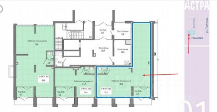 Помещение после сдачи, первая линия, качественно выполненная отделка под чистовую, электрика разведена, сантехника установлена, выполнена вентиляция. Створки окон открываются полностью и в режиме проветривания. Перед домом вместительная парковка.