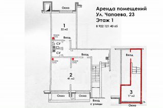 В помещении так же доступны к аренде кабинеты 22 м2 и41 м2.