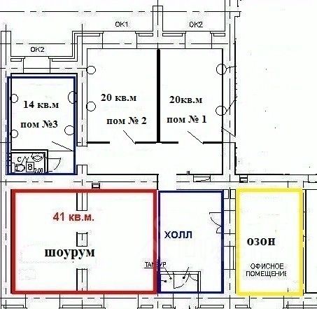 Три помещения: 1 пом- 20 м2, 2 пом- 20 м2, 3 пом,-14 м2