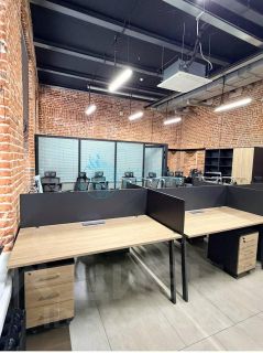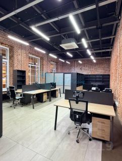 Три просторных кабинета ( можно дополнительно установить перегородки), высокие потолки 4,6 м., окна выходят на две стороны: в сторону ул Попова, с другой стороны вид в сторону галереи ( выставка).