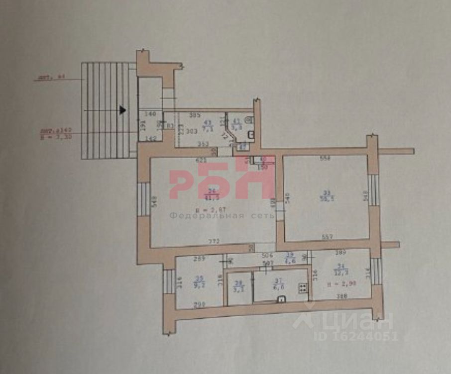 -Общая площадь - 119 кв. м. (3 кабинета с возможностью зонирования рабочих мест);