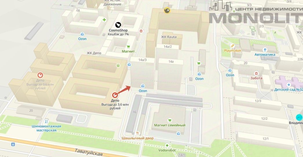 ЖК "Rauta" расположен в железнодорожном районе города Екатеринбурга на пересечении улиц Надеждинская-Таватуйская.