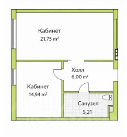 Планировка: два кабинета 22 м² (с мокрой точкой) и 15 м², холл, санузел. Планировка приложена