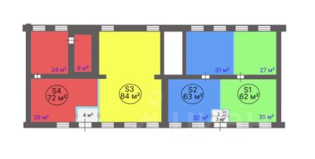 Площадь помещения 281 м2 (Возможно деление помещения на 62, 63, 72, 84, 124, 157 м2).
