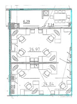 Помещение зонировано перегородками, что удобно для размещения нескольких рабочих зон или отделов.