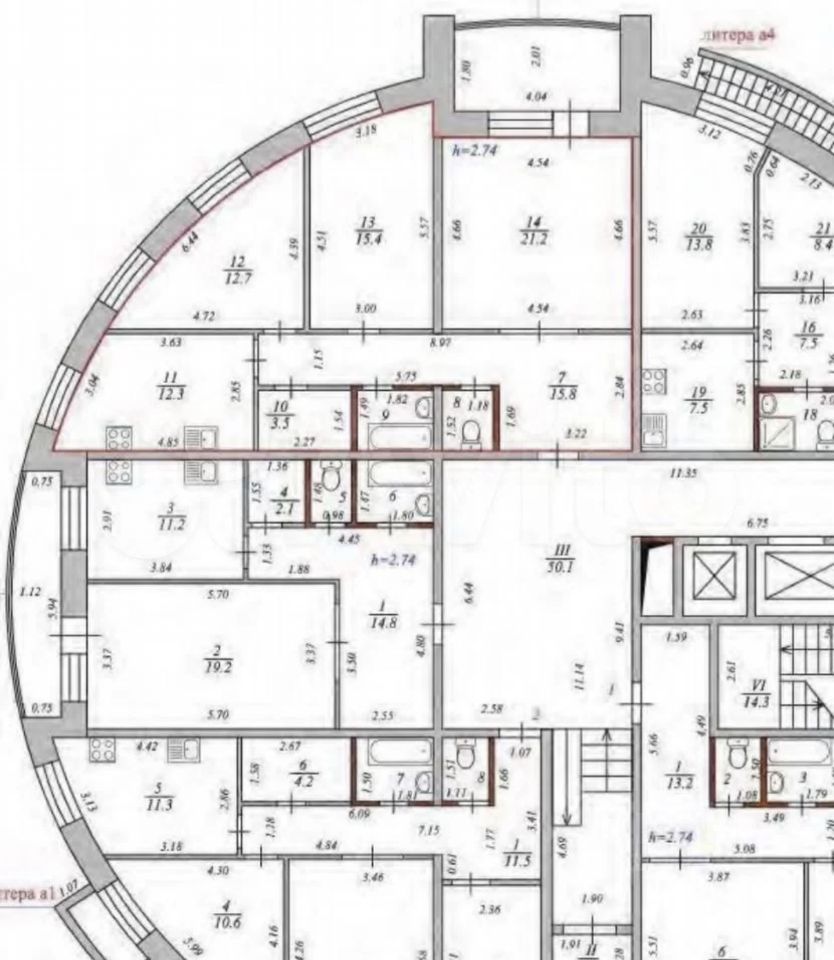 высокие потолки, много света