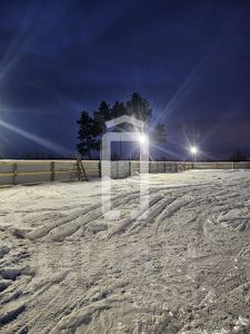 Ровный участок без построек, забор и освещение по всему периметру.
