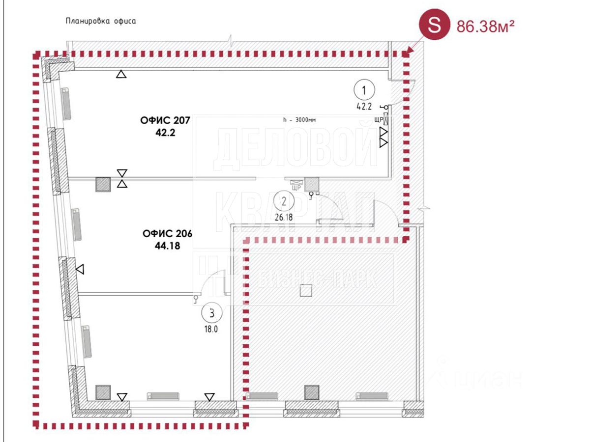 Предлагаем в аренду офис 86,38 м² в строении 2 бизнес-парка Деловой Квартал.