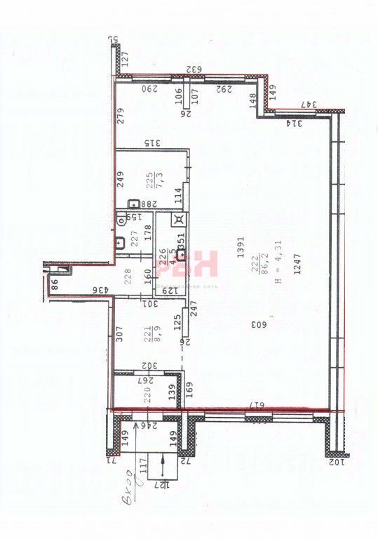 -Помещение состоит из: торгового зала прямоугольной формы общей площадью 86, 2 кв. м. , подсобных помещений, санузла ( в помещении проведены 3 мокрые точки);