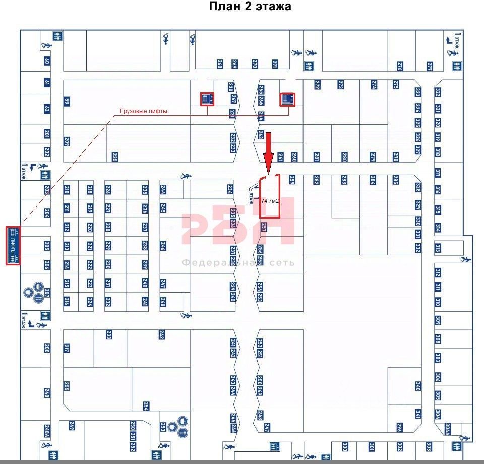 - помещение имеет преимущественное расположение, около экскалатора и грузового лифта с помощью которого удобно поднимать товар на второй этаж от места разгрузки машин, в соседних помещениях расположены: швейное производство, магазины оптовой торговли бытовыми товарами одеждой и обувью, склады, пункты по упаковки товаров для интернет магазинов, офисы;