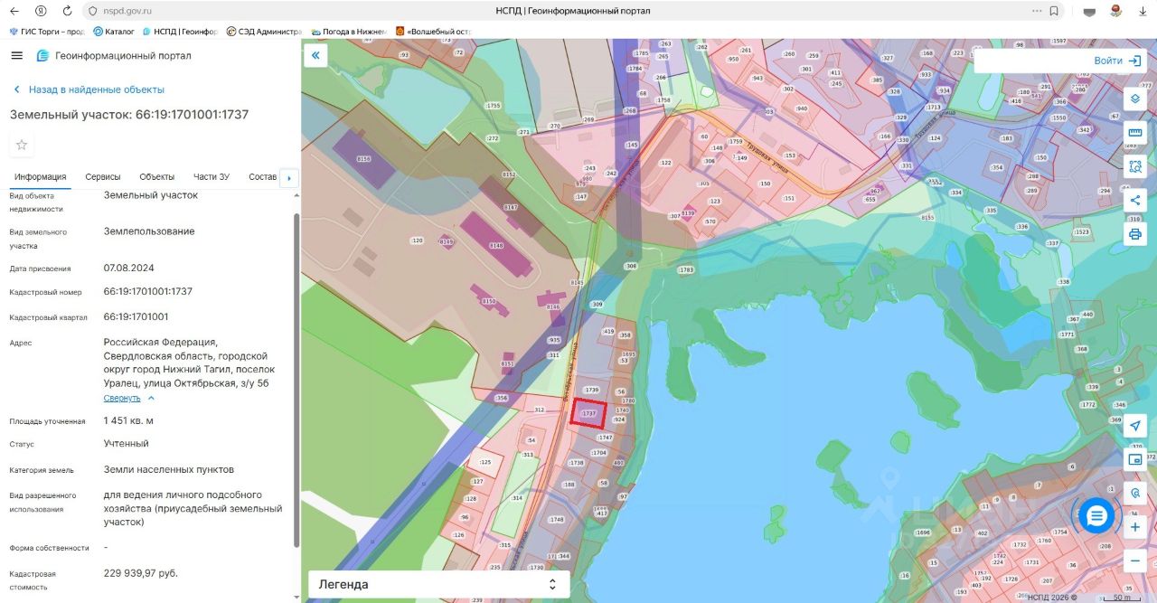 Лот 2. Земельный участок для ведения личного подсобного хозяйства. Категория земель земли населенных пунктов. Кадастровый номер 66:19:1701001:1737. Местоположение: Российская Федерация, Свердловская область, городской округ город Нижний Тагил, поселок Уралец, улица Октябрьская, з/у 5б. Площадь земельного участка 1451 кв. метр. Разрешенное использование земельного участка для ведения личного подсобного хозяйства (приусадебный земельный участок). Срок аренды земельного участка 20 лет. Начальная цена (ежегодный размер арендной платы) 22 993 (двадцать две тысячи девятьсот девяносто три) рубля. "Шаг аукциона" 1 100 (одна тысяча сто) рублей. Размер задатка 4 600 (четыре тысячи шестьсот) рублей