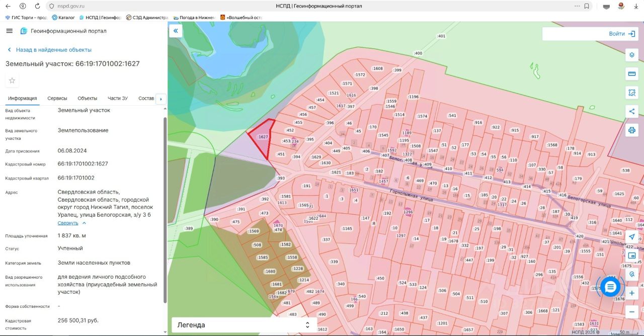 Лот 3. Земельный участок для ведения личного подсобного хозяйства. Категория земель земли населенных пунктов. Кадастровый номер 66:19:1701002:1627. Местоположение: Свердловская область, городской округ город Нижний Тагил, поселок Уралец, улица Белогорская, з/у 3 б. Площадь земельного участка 1837 кв. метров. Разрешенное использование земельного участка для ведения личного подсобного хозяйства (приусадебный земельный участок). Срок аренды земельного участка 20 лет. Начальная цена (ежегодный размер арендной платы) 25 650 (двадцать пять тысяч шестьсот пятьдесят) рублей. "Шаг аукциона" 1 200 (одна тысяча двести) рублей. Размер задатка 5 100 (пять тысяч сто) рублей