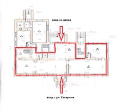 Предлагаем рассмотреть под офис или торговлю нежилое помещение свободного назначения на первой линии на улице Гагарина, недалеко от перекрестка с улицей Блюхера, где находятся остановки общественного транспорта.