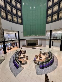 - Офисное здание включает в себя 6 лифтов, из которых 3 панорамных лифта.